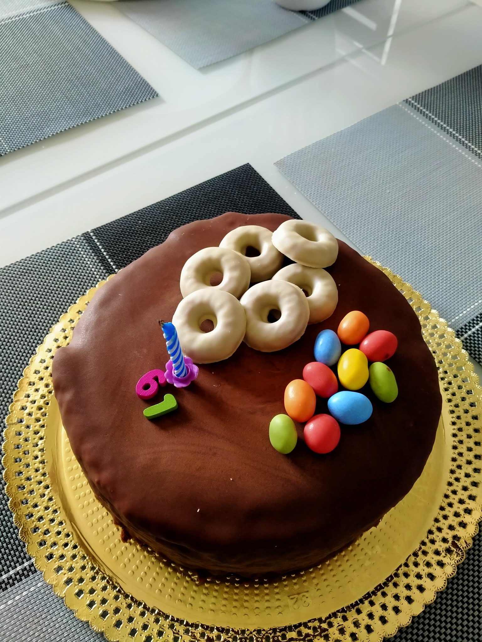 Ponemos la tarta en una rejilla y bañamos con el chocolate.
